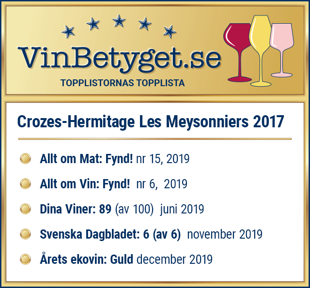 - CROZES-HERMITAGE LES MEYSONNIERS, får sammanlagt mycket höga expertbetyg.