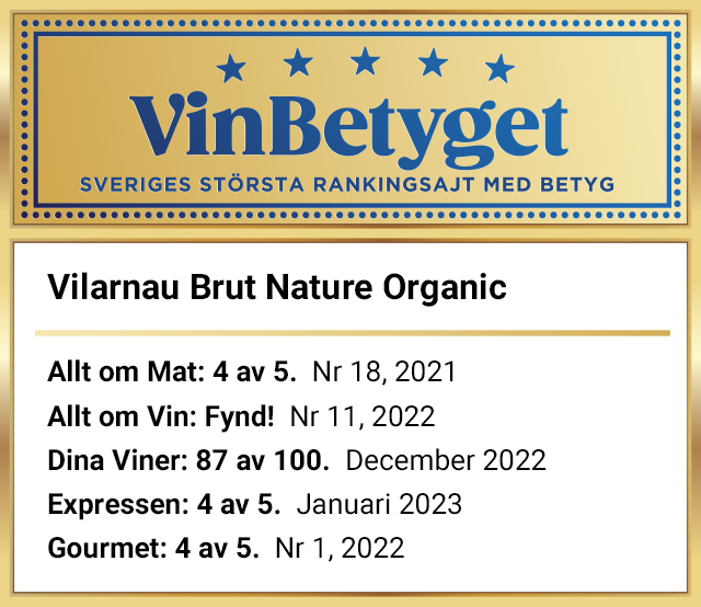 - Vilarnau Brut Nature Organic Cava får sammanlagt mycket höga expertbetyg.