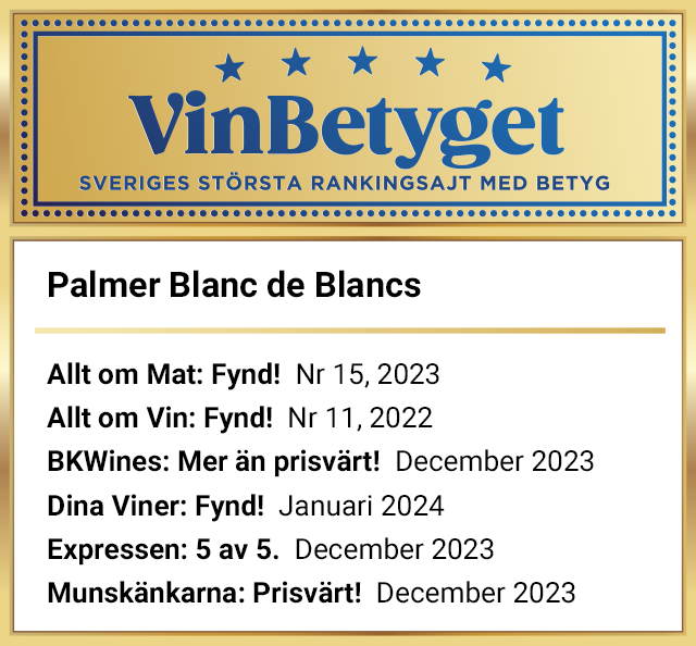 - Palmer Blanc de Blancs tillhör de främsta och mest prisvärda av Systembolagets samtliga champagner i denna prisklass.