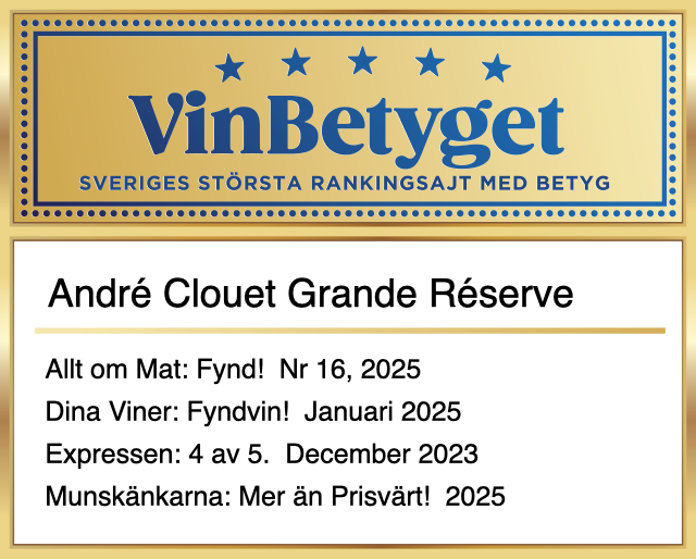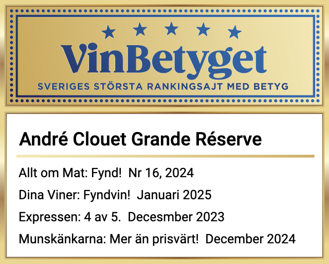 - André Clouet Grande Réserve får sammanlagt högsta expertbetyg – och rankas därför på Vinbetygets topplista.