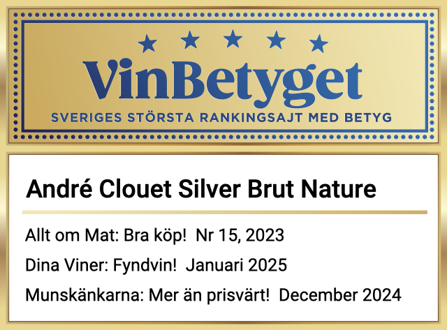 - André Clouet Silver Brut Nature får höga expertbetyg – och rankas därför på Vinbetygets topplista.