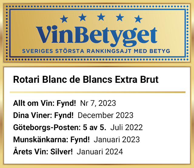 Rotari Blanc de Blancs Brut får sammanlagt mycket höga expertbetyg.