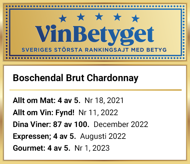 - Boschendal Brut Chardonnay Pinot Noir får sammanlagt mycket höga expertbetyg.