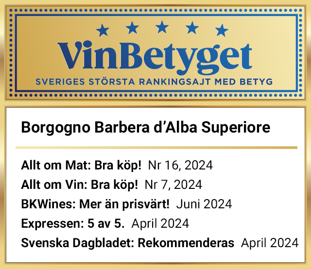 - Borgogno Barbera d'Alba Superiore framställs till 100% av druvan Barbera.