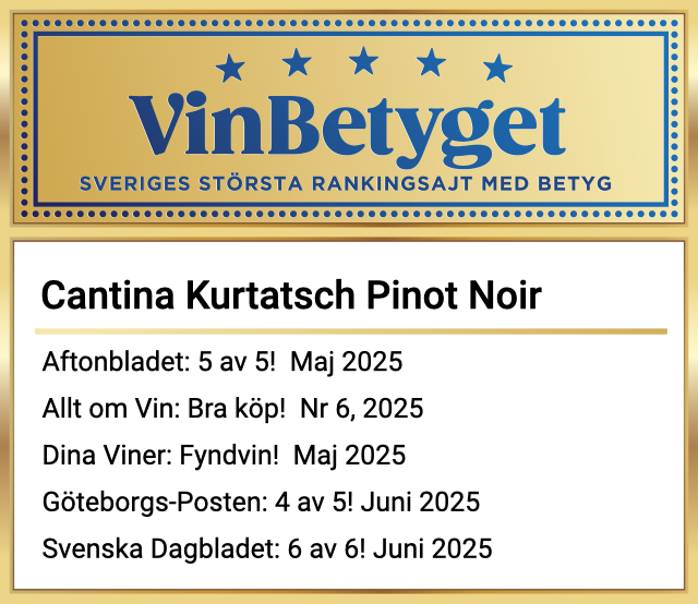 Ranking: Vinet får sammanlagt höga expertbetyg vilket motiverar att vinet rankas bland de högsta på Vinbetygets topplista.