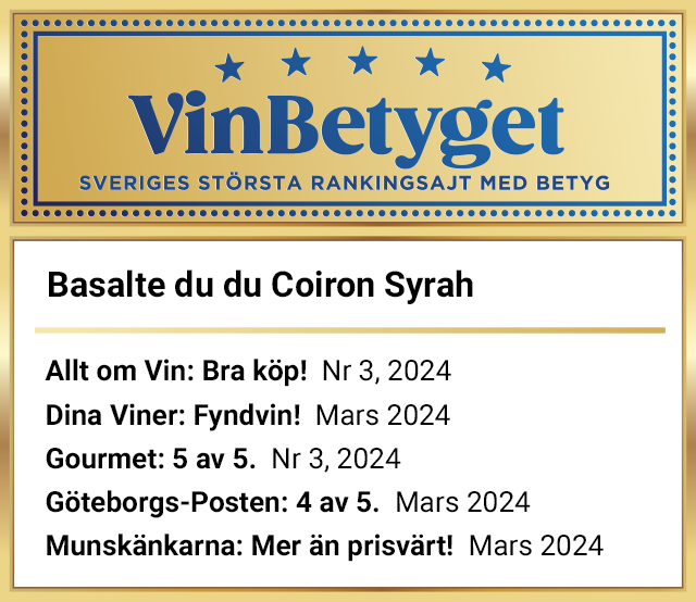 - Ranking: Basalte du Coiron får höga totalbetyg av experterna. Bland de mest prisvärda vinerna av Systembolagets röda viner med lägre pris.