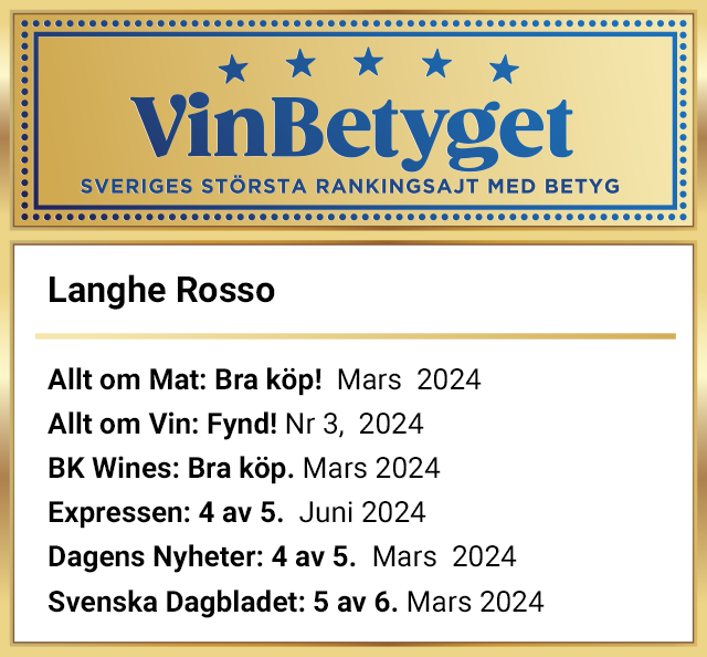 - Ranking: Langhe Rosso får mycket högt totalbetyg av experterna. Ett av de mest prisvärda vinerna av Systembolagets röda viner i prisklassen.