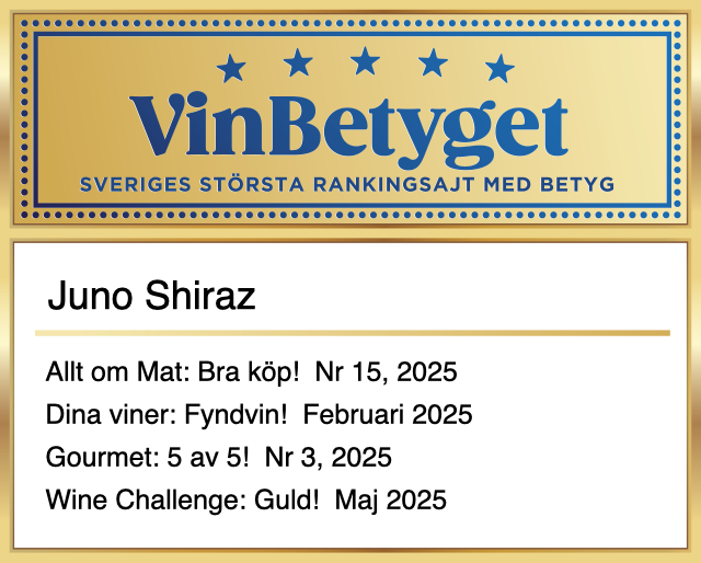 Juno Shiraz har en fin fruktighet och fyllighet utan att vara strävt.