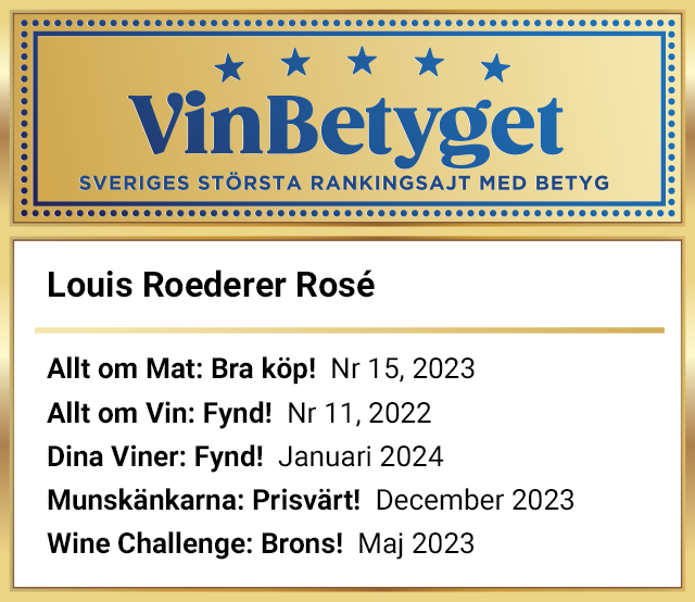 - LOUIS ROEDERER ROSÉ i årgång 2014, får sammanlagt höga expertbetyg – och rankas därför på Vinbetyget.
