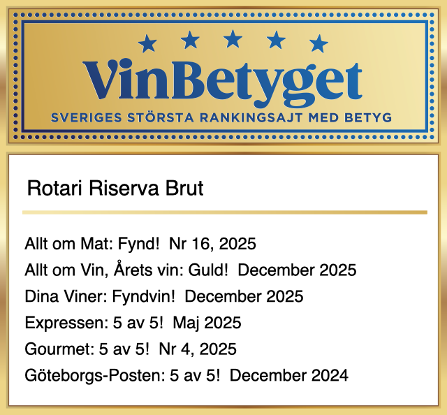 - Rotari Brut Riserva ifår sammanlagt mycket höga expertbetyg.
