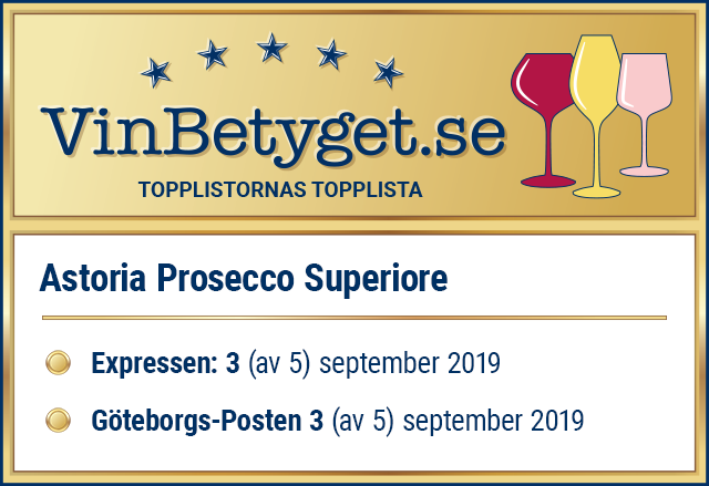 Astoria Prosecco Superiore får höga betyg och rankas därför på Vinbetygets topplista.