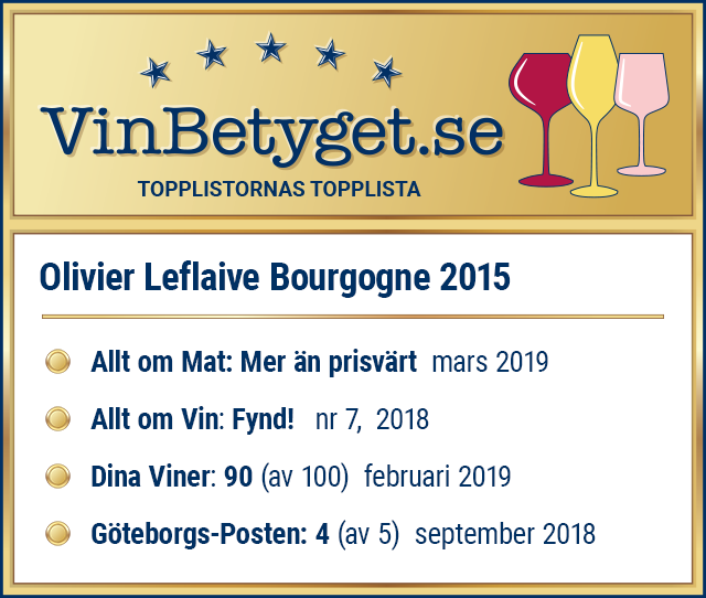 - OLIVIER LEFLAIVE BOURGOGNE CUVÉE MARGO av druvan Pinot noir, får sammanlagt mycket höga expertbetyg.