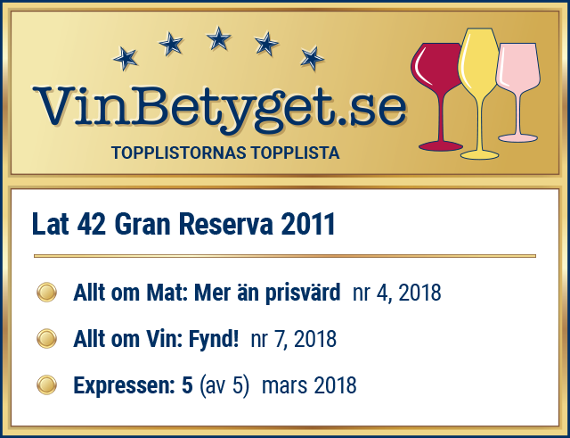 - LAT 42 RIOJA GRAN RESERVA, får sammanlagt mycket höga expertbetyg.