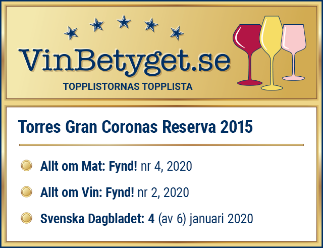 - TORRES GRAN CORONAS RESERVA, årgång 2015, får sammanlagt mycket höga expertbetyg