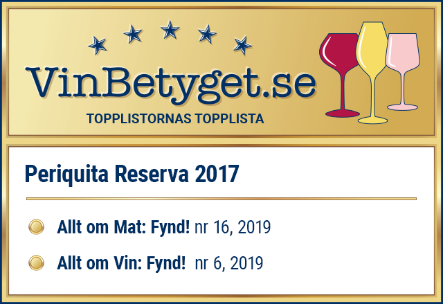 - PERIQUITA RESERVA får sammanlagt mycket höga expertbetyg.