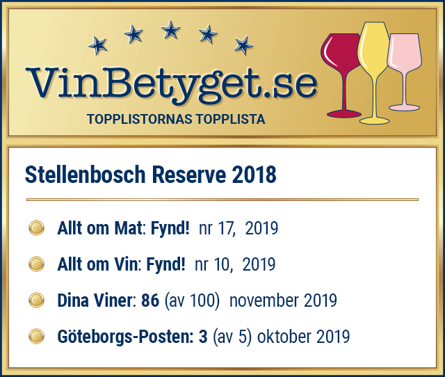 - STELLENBOSCH RESERVE VANDERSTEL får sammanlagt mycket höga expertbetyg.