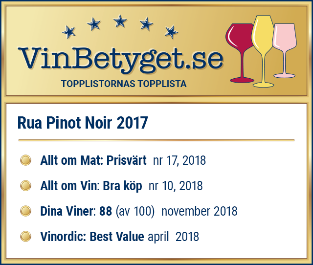 Alla betygen som vi sammanställt nedan, motiverar att Rua Pinot Noir rankas på Vinbetygets topplista.