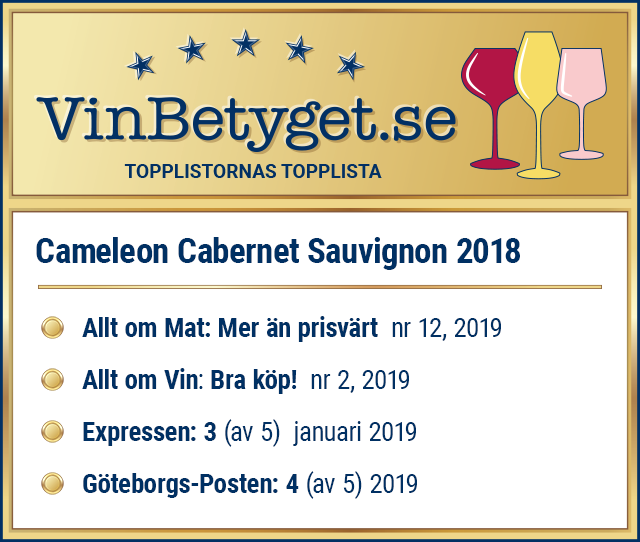 Cameleon Selection Cabernet Sauvignon, får sammanlagt mycket höga expertbetyg – och rankas därför på VinBetygets topplista. 79 kr: Det är absolut ett av de mest prisvärda vinerna av Systembolagets alla 286 viner i priskategorin.