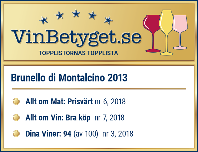 Brunello di Montalcino Casanova di Neri, får sammanlagt mycket höga expertbetyg – och rankas därför på VinBetygets topplista.