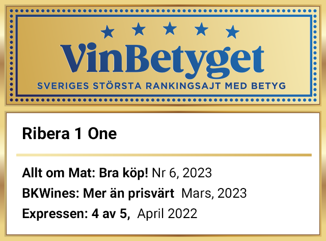 Ribera 1 One får mycket höga expertbetyg. Totalbetyget motiverar att vinet rankas på Vinbetygets topplista.