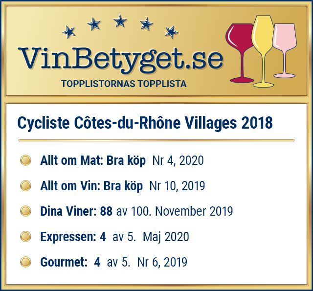 - Ranking: Betygen motiverar att Cycliste rankas på Vinbetygets topplista.