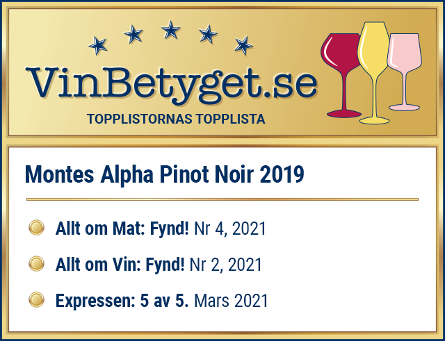 Montes Alpha Pinot Noir får höga expertbetyg.