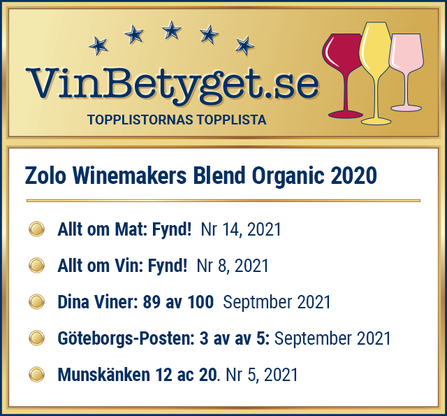 - Zolo Winemakers Blend Organic får mycket höga expertbetyg.
