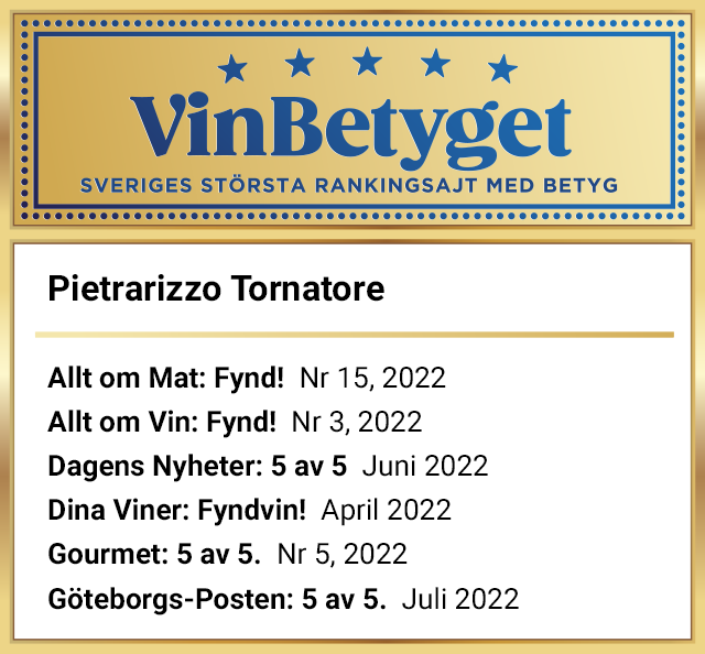 - Ranking: Det höga totalbetyget motiverar att vinet rankas på Vinbetygets topplista.