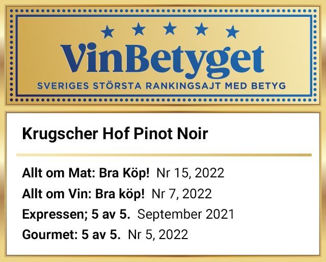 - Krugscher Hof Pinot Noir får höga expertbetyg och rankas på Vinbetygets topplista.