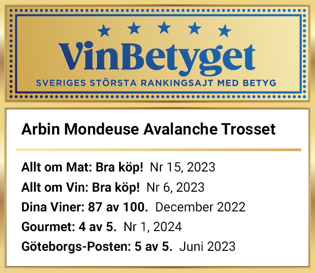 - Ranking: Arbin Mondeuse Avalanche Trosset får höga expertbetyg och rankas på Vinbetygets topplista.