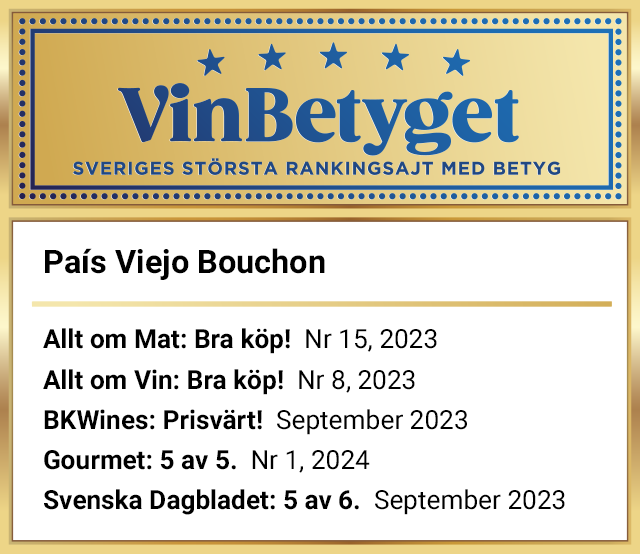 - Ranking: País Viejo Bouchon får höga totalbetyg av experterna. Ett av de mer prisvärda vinerna av Systembolagets röda viner i sin prisklass.