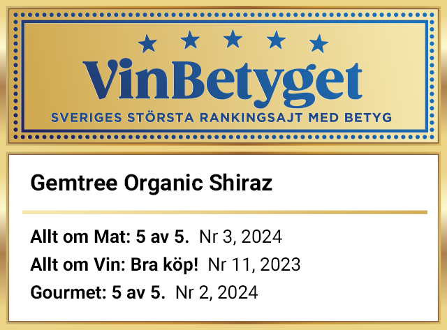 - Ranking: Gemtree Organic får sammanlagt mycket höga expertbetyg. Vinet tillhör de främsta av Systembolagets röda boxviner.