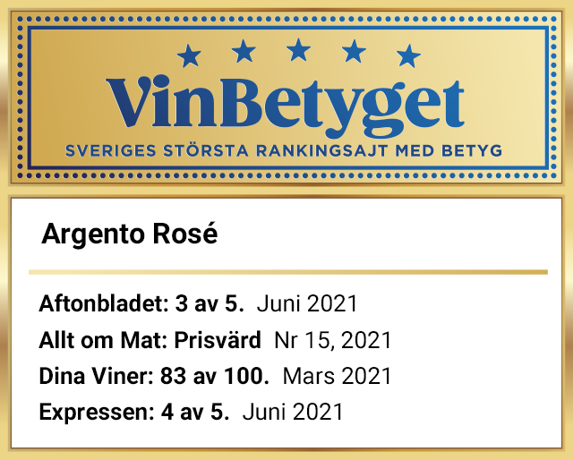 - Boxvinet Argento Rosé får sammanlagt mycket höga expertbetyg – och rankas därför på VinBetygets topplista.