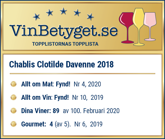 Ranking: Totalbetyget nedan, motiverar att Chablis Clotilde Davenne rankas på Vinbetygets topplista.