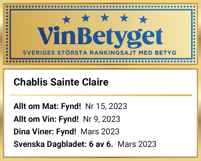 - Chablis Sainte Claire av J M Brocard får sammanlagt mycket höga expertbetyg.