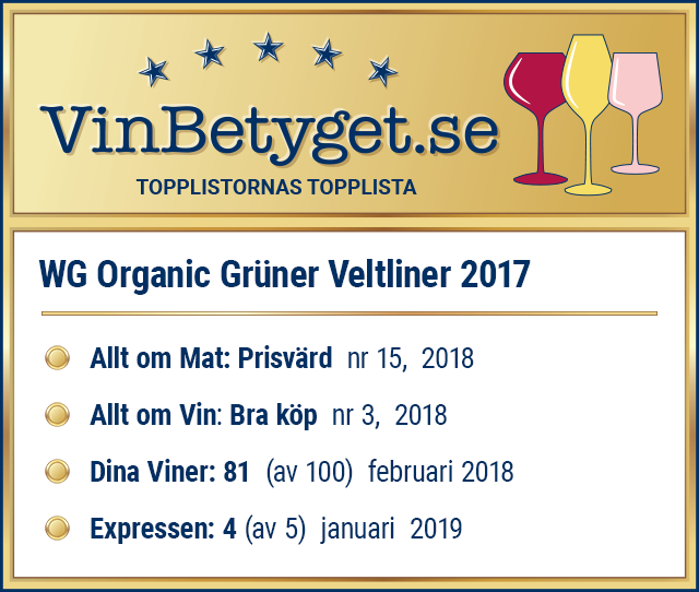 Ett matvänligt vitt vin: WG Organic Grüner Veltliner, får sammanlagt mycket höga expertbetyg – och rankas därför på VinBetygets topplista.