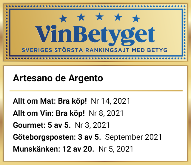 - Det ekologiska vita vinet Artesano de Argento får sammanlagt mycket höga expertbetyg.