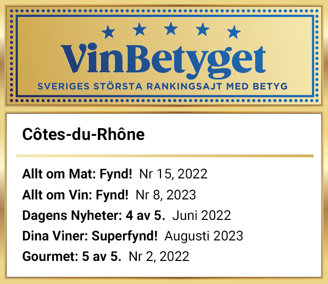 - Ranking: Vinet får ett högt totalbetyg som motiverar att det rankas på Vinbetygets topplista.