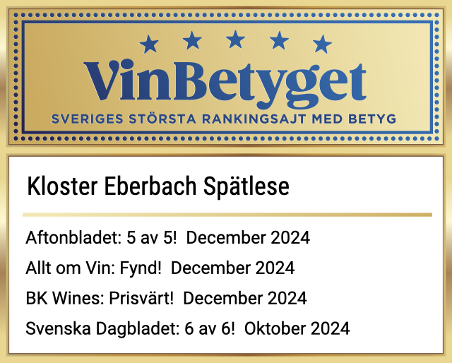 - Kloster Eberbach Riesling Spätlese, i nya årgången får sammanlagt mycket höga expertbetyg.