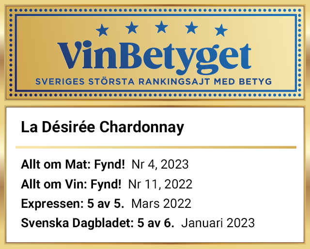 - La Désirée Chardonnay får sammanlagt mycket höga expertbetyg.