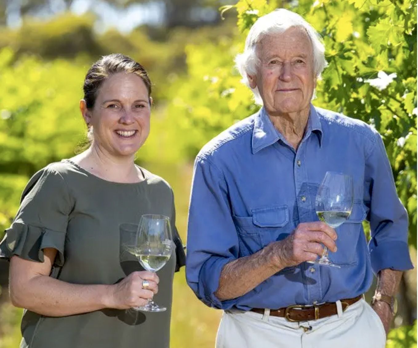 John Vickery var mästaren och pionjären som utvecklade rieslingviner i Australien under fem decennier. Här med sin efterträdare, den skickliga vinmakaren Keeda Zilm.