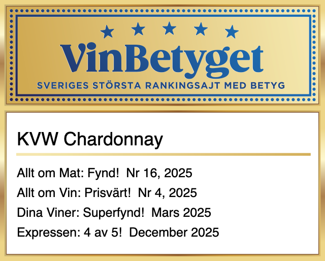 - Pålitliga KWV Chardonnay får sammanlagt mycket höga expertbetyg – och rankas därför på Vinbetygets topplista.