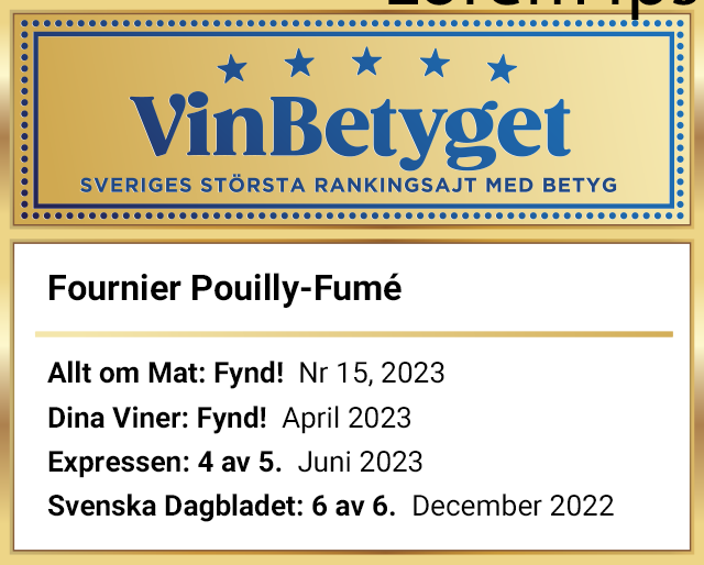 - Pouilly-Fumé Les Deux Cailloux får högt totalbetyg och rankas därför på Vinbetygets topplista.