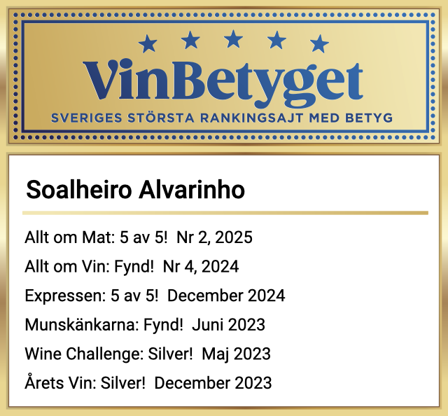- Soalheiro Alvarinho får sammanlagt mycket höga expertbetyg.